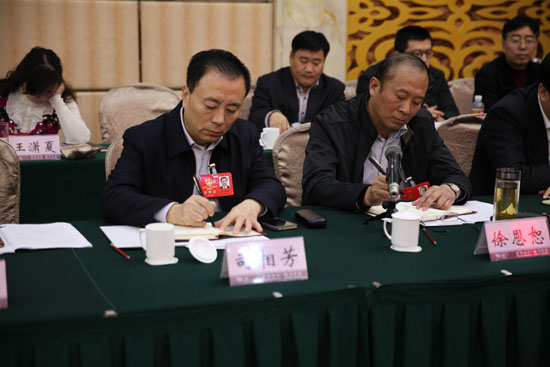 司相芳總經理在參加省十二屆人大四次會議代表團討論時認真記錄