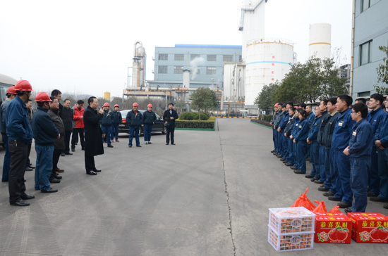 司總帶隊先后來到了控制中心、備煤分廠、甲醇分廠、廠區(qū)南大門崗和物流中心,親切慰問了堅守在工作一線的員工,分別送上節(jié)日慰問品,并對堅守在生產(chǎn)一線的干部職工致以新春的美好祝福。司總講到,2014年公司取得了較好的經(jīng)營業(yè)績,是與每位員工的辛勤付出分不開的,對大家一年來在工作中作出的貢獻表示感謝,并表示下一步公司將會營造更加舒適的工作與生活環(huán)境,讓廣大職工無后顧之憂。司總最后勉勵大家,新的一年要更加努力的工作,使公司各項工作再上新臺階。整個慰問過程充滿了歡樂祥和的氣氛,使大家深受鼓舞。