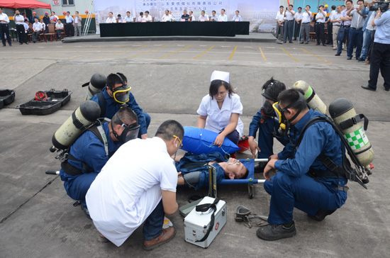 本網(wǎng)訊 5月29日上午,濟寧市第二次安委會成員單位會議暨?;沸孤?yīng)急救援演練在山東榮信煤化有限責(zé)任公司舉行。國家安監(jiān)總局呂海燕司長出席會議并對演練進(jìn)行點評,濟寧市委常委、副市長周洪出席會議并作重要講話,濟寧市公安局局長周鳳文,安監(jiān)局局長陳魯起,鄒城市委副書記、市長謝成海,副市長劉剛等觀摩演練并參加會議,公司總經(jīng)理司相芳陪同觀摩演練。濟寧市安委會成員單位負(fù)責(zé)同志,各縣市(區(qū))分管縣市(區(qū))長、安監(jiān)局長,40余家重點危化品企業(yè)負(fù)責(zé)同志觀摩演練并參加會議。 與會人員首先觀摩了榮信煤化危險化學(xué)品泄漏應(yīng)急演練活動。上午9:00,周洪副市長宣布:“濟寧市安全生產(chǎn)月活動啟動儀式暨?;沸孤?yīng)急救援演練開始!”本次演練以機焦分廠上升管1號放散管根部因銹蝕突然破裂造成大量煤氣泄漏,一名員工因吸入大量煤氣導(dǎo)致中毒為模擬場景實施救援。煤氣泄漏后,在撤離過程中一名員工因吸入大量煤氣導(dǎo)致中毒暈倒,另一名員工撤離到安全區(qū)域后立即通知值長請求救援。值長立即向分廠領(lǐng)導(dǎo)匯報并撥打120,分廠領(lǐng)導(dǎo)接到事故報告后立即下達(dá)“停止生產(chǎn)、設(shè)備斷電、維修人員排查泄漏原因”的口令,給調(diào)度室匯報請求公司救援并立即趕往現(xiàn)場。公司應(yīng)急救援小組人員穿戴防護(hù)用具后迅速進(jìn)入現(xiàn)場救出中毒員工,將爐頂員工疏散至安全區(qū)域。公司調(diào)度室立即撥打119請求支援,公司領(lǐng)導(dǎo)及各部門負(fù)責(zé)人第一時間到達(dá)事故現(xiàn)場成立救援指揮部。指揮部分別向市安監(jiān)局、質(zhì)監(jiān)局、環(huán)保局、衛(wèi)計局、公安消防大隊報告事故情況,請求地方救援。經(jīng)過維修人員緊張的排查、搶修,將管道泄漏部位修復(fù),險情得以控制。 救護(hù)車、消防車趕到現(xiàn)場后,醫(yī)護(hù)人員查看中毒者傷情,隨即用救護(hù)車將其送往醫(yī)院,消防車開至現(xiàn)場向設(shè)備泄漏位置用水槍稀釋,防止發(fā)生火災(zāi)。環(huán)保局、安監(jiān)局帶領(lǐng)相關(guān)人員到達(dá)事故現(xiàn)場,安監(jiān)局負(fù)責(zé)指揮協(xié)調(diào),環(huán)保局對周圍環(huán)境進(jìn)行了監(jiān)測,經(jīng)環(huán)境檢測沒有對周圍環(huán)境造成污染。本次演練結(jié)束。 演練結(jié)束后,在公司禮堂召開濟寧市第二次安委會成員單位會議,各縣(市、區(qū))就落實企業(yè)主體責(zé)任工作進(jìn)展情況和赴北京順義區(qū)考察學(xué)習(xí)后有關(guān)工作落實情況,作了工作匯報。周洪副市長指出,今年以來,各級各部門緊緊圍繞安全生產(chǎn)這條主線,不斷提升思想認(rèn)識,扎實推進(jìn)網(wǎng)格實名制、落實企業(yè)主體責(zé)任、完善政府購買服務(wù)等工作,有效遏制了安全事故的發(fā)生,安全生產(chǎn)工作取得了顯著成效。6月份是全國第14個“安全生產(chǎn)月”,對于廣泛宣傳安全生產(chǎn)大政方針,普及國家安全生產(chǎn)法律法規(guī),鞏固和擴大安全生產(chǎn)專項整治成果具有重大意義。各級各部門要認(rèn)真開展形式多樣的宣傳教育活動,確保規(guī)定活動扎扎實實,自選活動有聲有色。