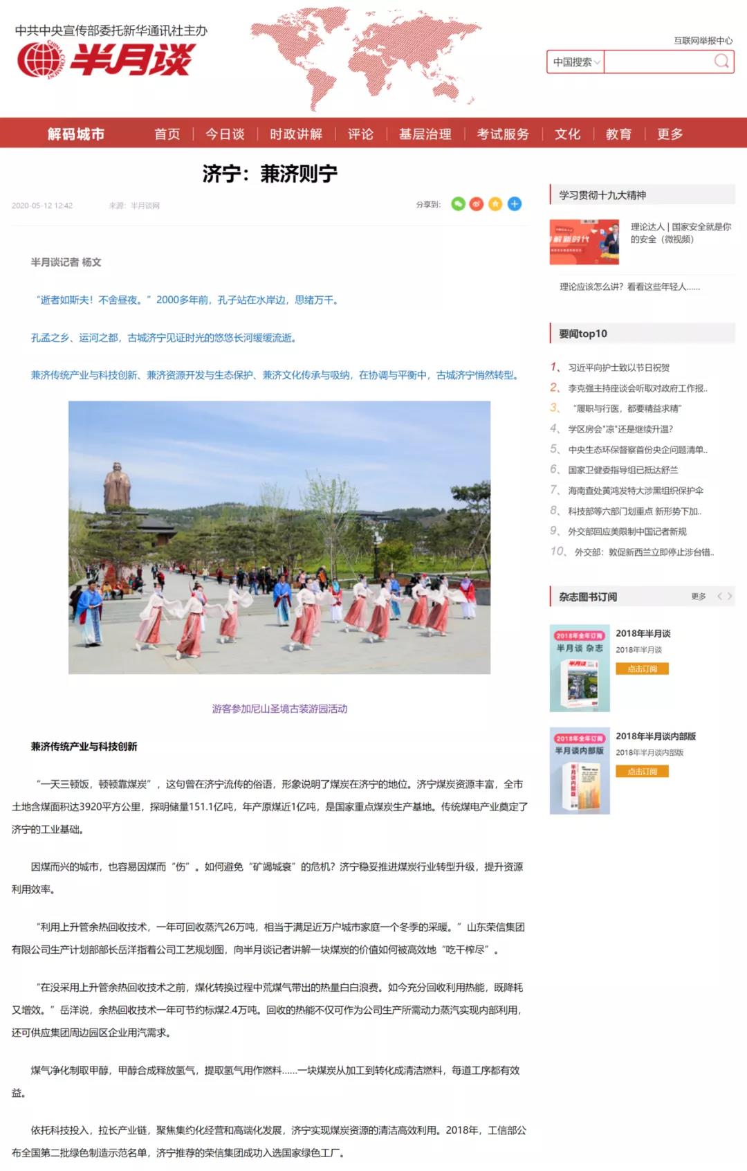 5月12日,黨刊《半月談》官網(wǎng)平臺(tái)刊載文章《濟(jì)寧:兼濟(jì)則寧》,在文章中,以第一個(gè)標(biāo)題“兼濟(jì)傳統(tǒng)產(chǎn)業(yè)與科技創(chuàng)新”,對(duì)山東榮信集團(tuán)節(jié)能降耗、綠色循環(huán)發(fā)展和大力發(fā)展氫能源,依托科技投入,拉長(zhǎng)產(chǎn)業(yè)鏈,聚焦集約化經(jīng)營(yíng)和高端化發(fā)展,從而實(shí)現(xiàn)煤炭資源清潔高效利用的成功做法和榮信集團(tuán)成功入選國(guó)家綠色工廠(chǎng)給予點(diǎn)贊!把榮信集團(tuán)作為資源型城市轉(zhuǎn)型升級(jí)和新舊動(dòng)能轉(zhuǎn)換的典范企業(yè)加以報(bào)道!