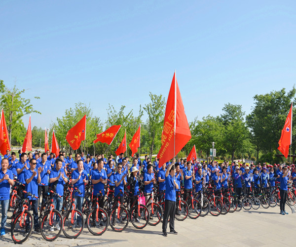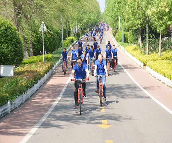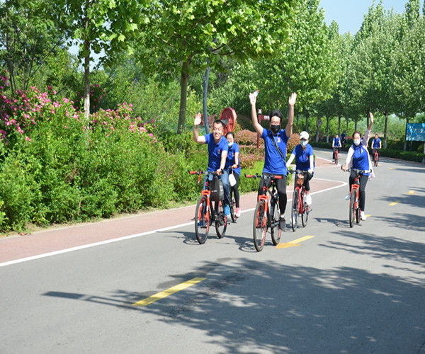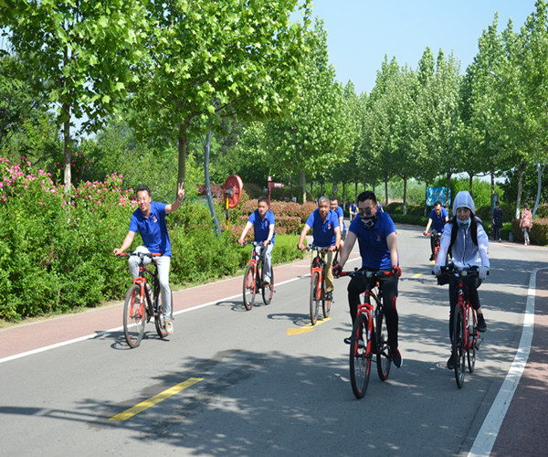 本次參與騎行活動(dòng)的人員統(tǒng)一穿著印有集團(tuán)公司LOGO的Polo衫,騎行的單車采用榮信建廠十周年統(tǒng)一發(fā)放的自行車,騎行路線主要是沿太白湖環(huán)湖騎行一周,路程約13km。為確?;顒?dòng)順利進(jìn)行,公司在騎行沿途設(shè)置了補(bǔ)水站點(diǎn),并安排若干后勤保障人員提供補(bǔ)給服務(wù)。
