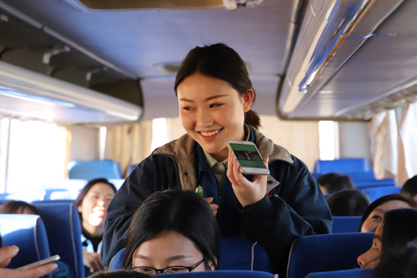 女神們一路上歡聲笑語,小游戲、詩朗誦、猜字謎接連不斷,一首小合唱《走向富強》把氛圍推向了高潮。