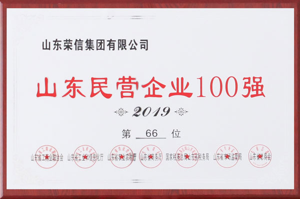 7月11日,山東省工商聯(lián)十三屆四次常委會(huì)議暨2019年山東民營(yíng)企業(yè)100強(qiáng)發(fā)布會(huì)在臨沂召開(kāi)。會(huì)議發(fā)布了2019年山東民營(yíng)企業(yè)100強(qiáng)榜單,山東榮信集團(tuán)位列榜單第66位,較去年上升11個(gè)位次。