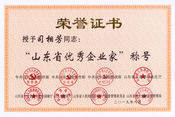 近年來,司相芳同志始終堅定“聽黨的話,跟黨走,按政府要求做事,依法辦企業(yè)”的方針,認真貫徹落實習近平新時代中國特色社會主義思想,自覺增強“四個意識”、堅定“四個自信”、做到“兩個維護”,以實際行動弘揚新時代企業(yè)家精神和工匠精神,在加快新舊動能轉換、推動高質量發(fā)展、踐行社會責任等方面走在前列、作出表率。他領航的山東恒信集團和山東榮信集團,緊緊圍繞新時代“與民同富、與城同興、與國同強”的歷史使命,始終致力“向最好學習,同最好對標,當最優(yōu)同行,做最久基業(yè)”的信念,堅定踐行新發(fā)展理念,著力打造平安企業(yè)、誠信企業(yè)、和諧企業(yè)、魅力企業(yè)“四個企業(yè)”,全面塑造高端煤化工與石油化工集約集群、融合發(fā)展的新優(yōu)勢,以“日盛一日、年盛一年”的綜合效益,以“善作善成、做就做最好,行穩(wěn)致遠”的強大區(qū)域拉動力、行業(yè)競爭力和財稅貢獻力,為山東區(qū)域經(jīng)濟發(fā)展做出了突出貢獻。先后榮獲中國民營企業(yè)500強、中國制造業(yè)500強、山東企業(yè)100強、國家級綠色工廠、國家級高新技術企業(yè)等榮譽稱號。