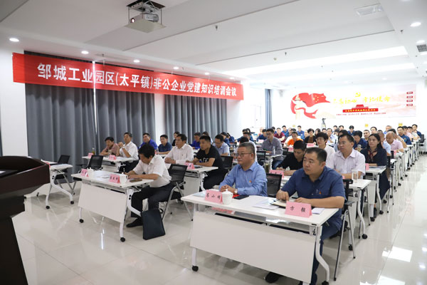 9月18日上午,由鄒城民營企業(yè)服務(wù)隊和鄒城工業(yè)園區(qū)(太平鎮(zhèn))主辦,山東榮信集團承辦的非公企業(yè)黨建知識培訓(xùn)會議在榮信科技樓培訓(xùn)中心舉行。濟寧市委組織部組織二科科長朱磊、鄒城民營企業(yè)服務(wù)隊隊長蘇長祥、鄒城工業(yè)園區(qū)(太平鎮(zhèn))黨委組織委員邱勇出席會議。培訓(xùn)由朱磊科長主講,邱勇主持會議。山東榮信集團副總經(jīng)理、黨委委員高小明,各支部書記、委員及園區(qū)(太平鎮(zhèn))34家企業(yè)的黨組織負(fù)責(zé)人、黨務(wù)工作者等共計70余人參加會議。