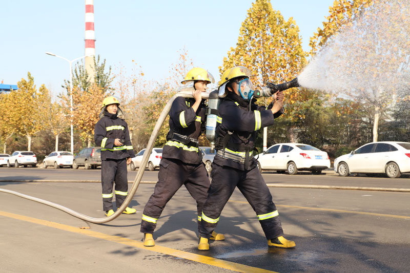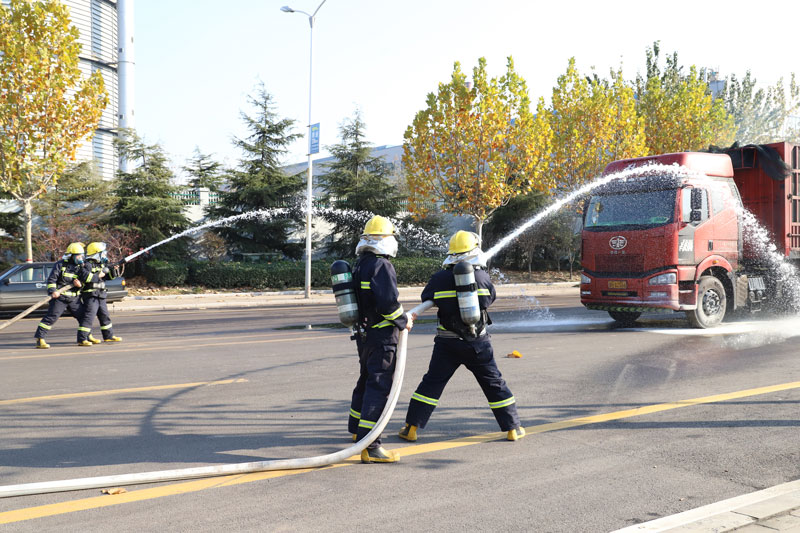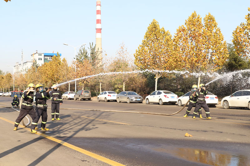 集團(tuán)副總經(jīng)理高小明,生產(chǎn)計(jì)劃部、安環(huán)部、各分廠、部室主要負(fù)責(zé)人等20余人親臨現(xiàn)場進(jìn)行觀摩指導(dǎo)。保衛(wèi)部40多人參加演練。下午14時(shí),練兵正式開始,在保衛(wèi)部副部長王文廣指揮下,首先開展了車輛著火事故消防應(yīng)急演練,消防指戰(zhàn)員以最快的速度趕赴現(xiàn)場處置,根據(jù)現(xiàn)場情況,下達(dá)作戰(zhàn)命令,明確任務(wù)分工,經(jīng)過5分鐘的緊張?zhí)幹?,火勢撲滅,消防演?xí)結(jié)束。