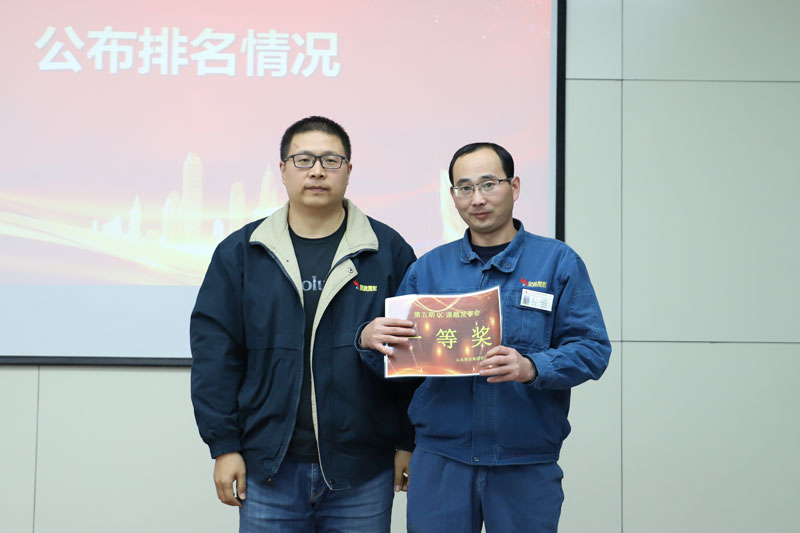 發(fā)布會上,QC課題的詳實(shí)內(nèi)容及發(fā)布人繪聲繪色、深入淺出的講解,贏得評委和現(xiàn)場觀眾充分肯定和好評。經(jīng)過評選,備煤分廠《提高堆煤工序卸車效率》課題榮獲一等獎,恒信科技《提高純苯質(zhì)量控制指標(biāo)達(dá)標(biāo)率》、動力分廠《提高電解水處理效率》及機(jī)焦二期《提高地面站裝煤系統(tǒng)吸力》分獲二等獎,動力分廠發(fā)布人詹炫炫獲“最佳發(fā)表人”稱號。吳總及其他評委分別為他們頒獎,表示鼓勵。