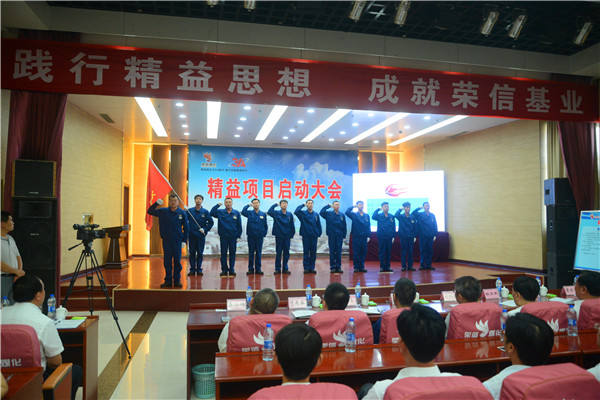 會上,吳海浪副總經(jīng)理介紹公司精益管理項目推行的基本概況并宣布“榮信煤化精益管理項目啟動”。隨后,杜總、吳總對11個樣板區(qū)進行授牌,樣板區(qū)團隊進行了精彩的風(fēng)采展示。最后,管理層和執(zhí)行層進行莊嚴宣誓并在承諾書上簽字。