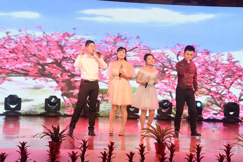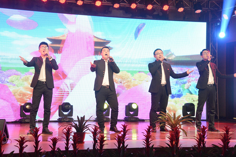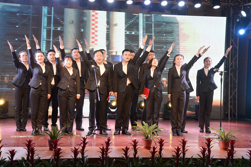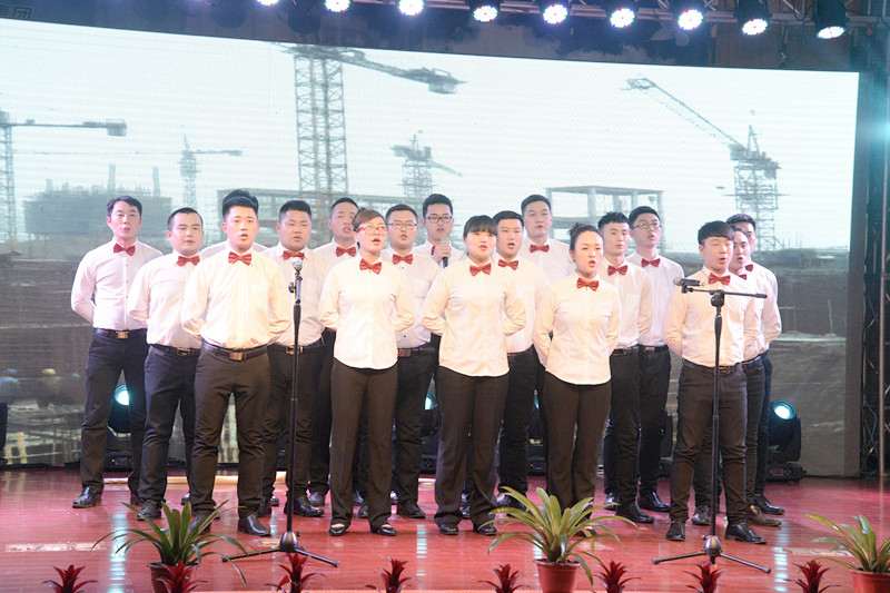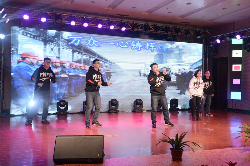 晚會(huì)以“新時(shí)代、新?lián)?dāng)、新發(fā)展”為主題,形式多樣、內(nèi)容豐富、精彩紛呈。晚會(huì)以激情高昂大氣的歌伴舞《陽光路上》拉開了帷幕。隨后歌曲《中國范兒》、《冰糖葫蘆》、《站在草原望北京》、《年輕的朋友來相會(huì)》等表演,熱情謳歌了新時(shí)代新生活新夢想。琵琶重奏《送我一支玫瑰花》、喊麥《夢想起航》、三句半《贊榮信》、熒光舞《舞動(dòng)激情》、群口相聲《誰的功勞大》、小品《榮信情緣》等節(jié)目,給觀眾帶來了耳目一新的視聽享受,贏得現(xiàn)場觀眾的陣陣掌聲。最后,晚會(huì)在激情昂揚(yáng)的歌曲《不忘初心》中圓滿落下帷幕。演出結(jié)束后,總經(jīng)理司相芳、副總經(jīng)理高小明、總工程師杜漢雙、副總經(jīng)理李繼新等集團(tuán)領(lǐng)導(dǎo)上臺(tái)與演職人員親切握手并合影留念,共同祝賀晚會(huì)取得圓滿成功。