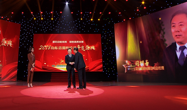 1月16日,“山東省2018年循環(huán)經(jīng)濟(jì)年度頒獎(jiǎng)盛典”在山東廣播電視臺(tái)800平米演播室舉行?;顒?dòng)評(píng)選出了“山東省2018年循環(huán)經(jīng)濟(jì)十大年度人物”、“十大科技成果獎(jiǎng)”、“年度十件大事”等獎(jiǎng)項(xiàng),山東榮信集團(tuán)司相芳總經(jīng)理榮獲“山東省2018年循環(huán)經(jīng)濟(jì)十大年度人物”榮譽(yù)稱號(hào),集團(tuán)獲得山東省循環(huán)經(jīng)濟(jì)科技成果獎(jiǎng)。