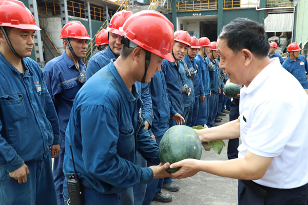 為關(guān)心員工身體健康,有效預(yù)防高溫中暑,確保大家全身心地投入到安全生產(chǎn)工作中去,6月18日,集團(tuán)工會(huì)聯(lián)合辦公室、人力資源部、審計(jì)監(jiān)察部等部門深入到保衛(wèi)部、備煤分廠、機(jī)焦分廠、恒信科技等一線開展了“高溫送清涼”活動(dòng),帶去了組織的關(guān)懷與慰問,感謝大家在高溫下任勞任怨、兢兢業(yè)業(yè)、埋頭苦干,對(duì)他們表現(xiàn)出的良好榮信精神風(fēng)貌表示贊揚(yáng)和敬意。