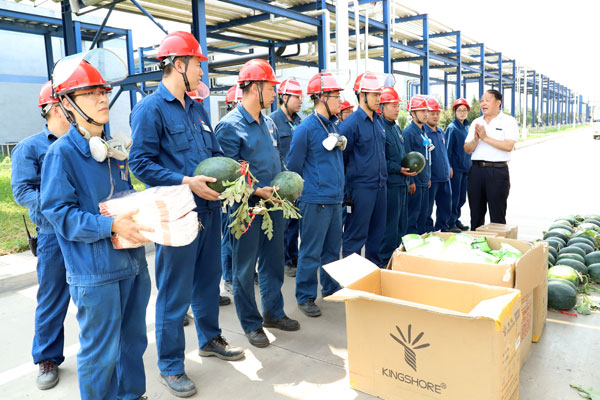 活動(dòng)中,公司相關(guān)領(lǐng)導(dǎo)詳細(xì)詢問了防暑降溫工作情況,叮囑大家要提高自我保護(hù)意識(shí),采取有效措施,預(yù)防中暑突發(fā)事件發(fā)生。并將茶葉、毛巾、西瓜、雪糕等慰問品親自發(fā)放到他們手中,溫暖著每一名職工的心,為高溫下恪盡職守的廣大職工增添了絲絲清涼,極大地調(diào)動(dòng)了大家的工作積極性。